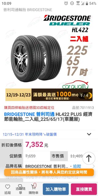 推 hhhhirooo : 推文有人不懂裝懂,225/65r17 BS一條成本1200-1600 12/19 14:05