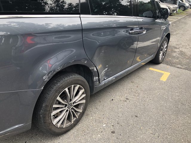 : 我的車是灰色納智傑M7停在黃線格內 逛到一半被警察通知車被撞了