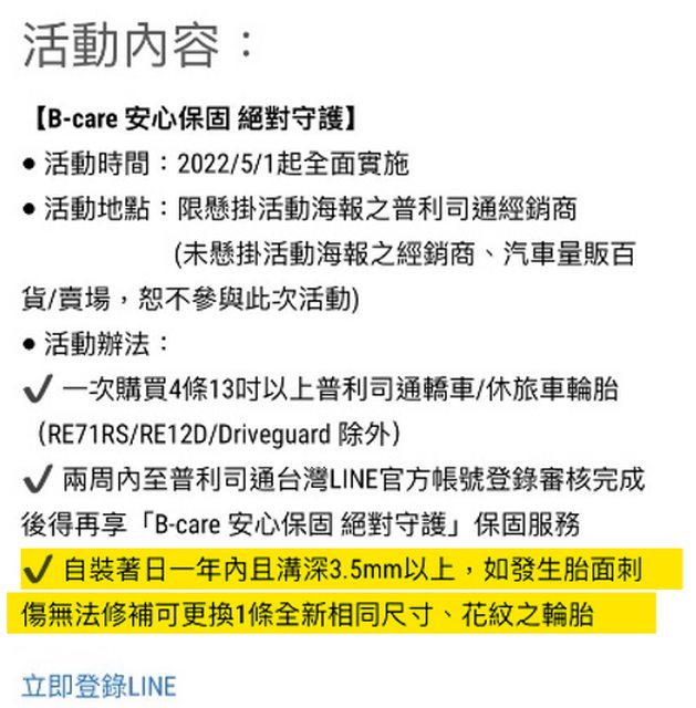 以參加抽獎, B-care主要服務是輪胎保固,其實我一直很注重產品保固,而且抽獎的部