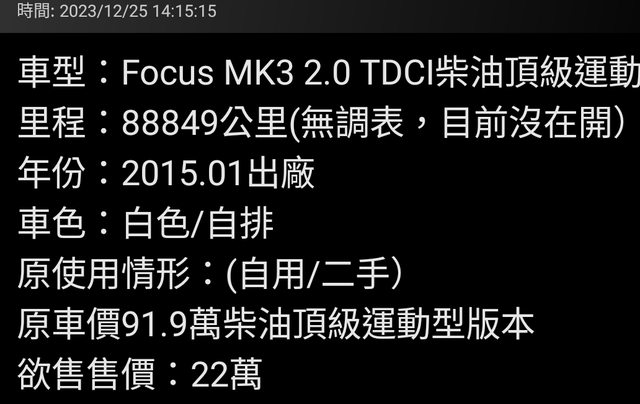 → mtc5566 : 2015的焦點號配PS垃圾變速箱 送我我也不要勒12/26 18:03