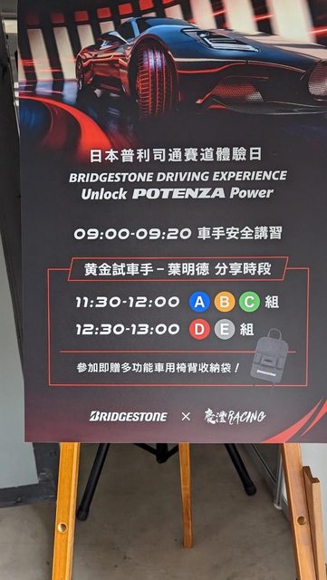 停好車進入場地,第一眼看到普利司通的輪胎告示牌、車貼、show girl等等。現場參與