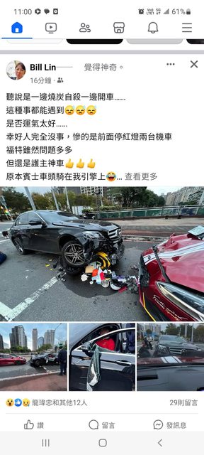 → chi17 : 賓士撞個機車而已大驚小怪是沒天天看到嗎 01/11 08:49