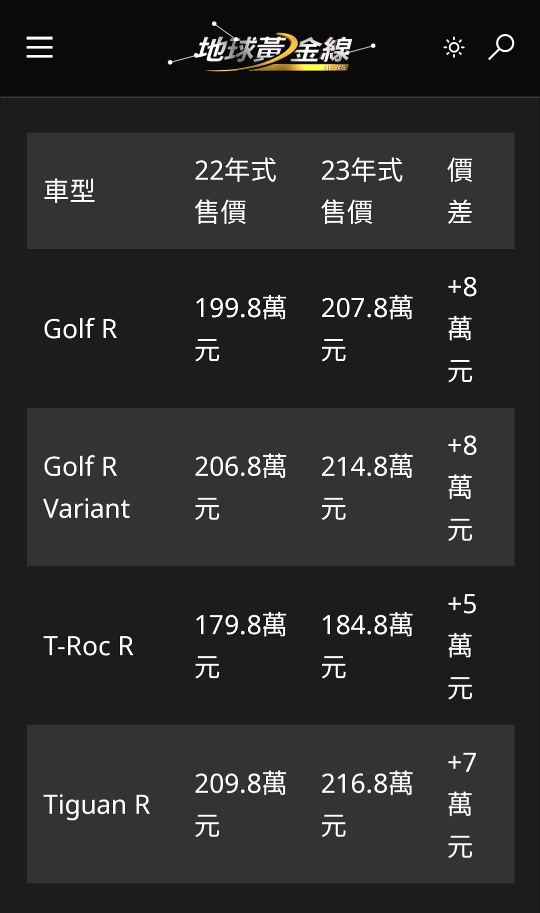 → DYE : VW一些車款跟歐洲同價 01/12 11:56