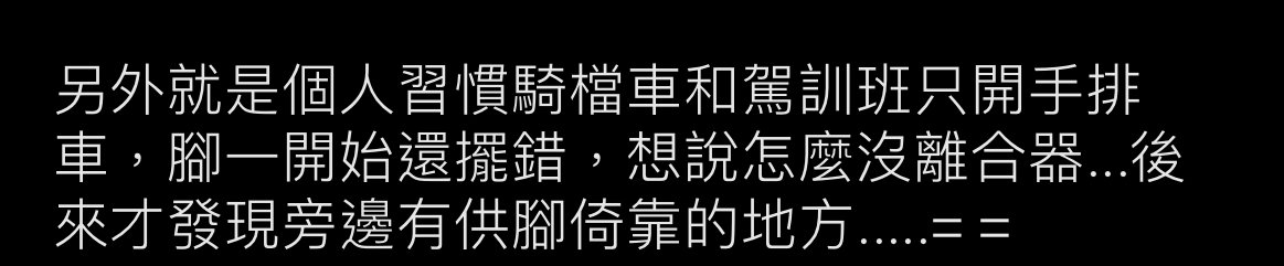 → heart0606 : 有離合器?腳要放哪? 01/13 10:33