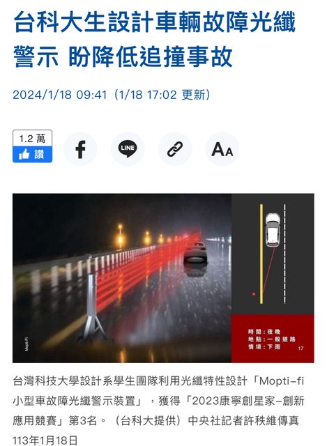 台科大生設計車輛故障光纖警示 盼降低追撞事故