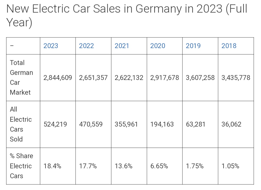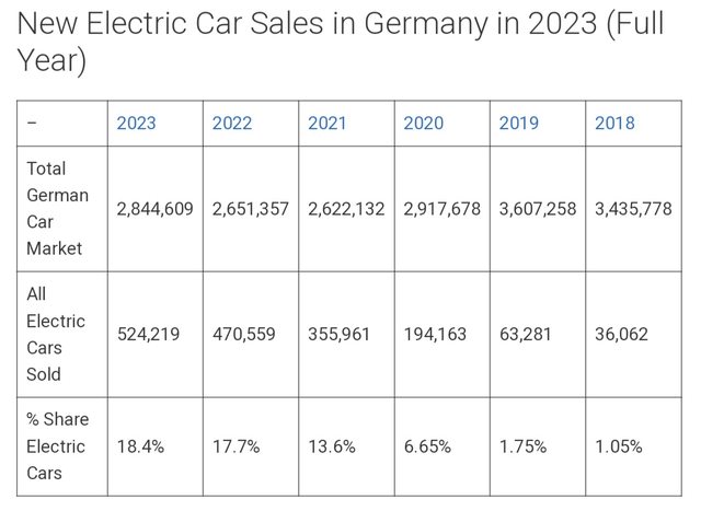 2023年1月德國新電動車註冊量僅18,100輛,