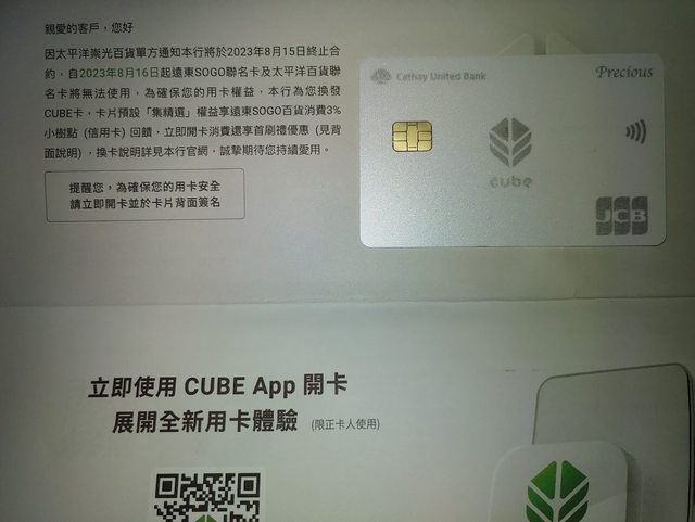 → kalmia : 換發的CUBE JCB 8/11已收到卡片 08/12 10:33