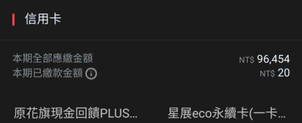 推 Kobe105 : 只有貸款有顯示繳費金額 信用卡連額度都沒顯示 08/14 22:35