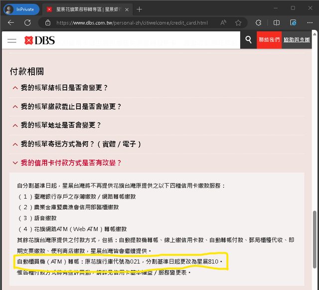 關於 『付款相關 > 我的信用卡付款方式是否有改變?』的欄位裡面,就已經有告知:
