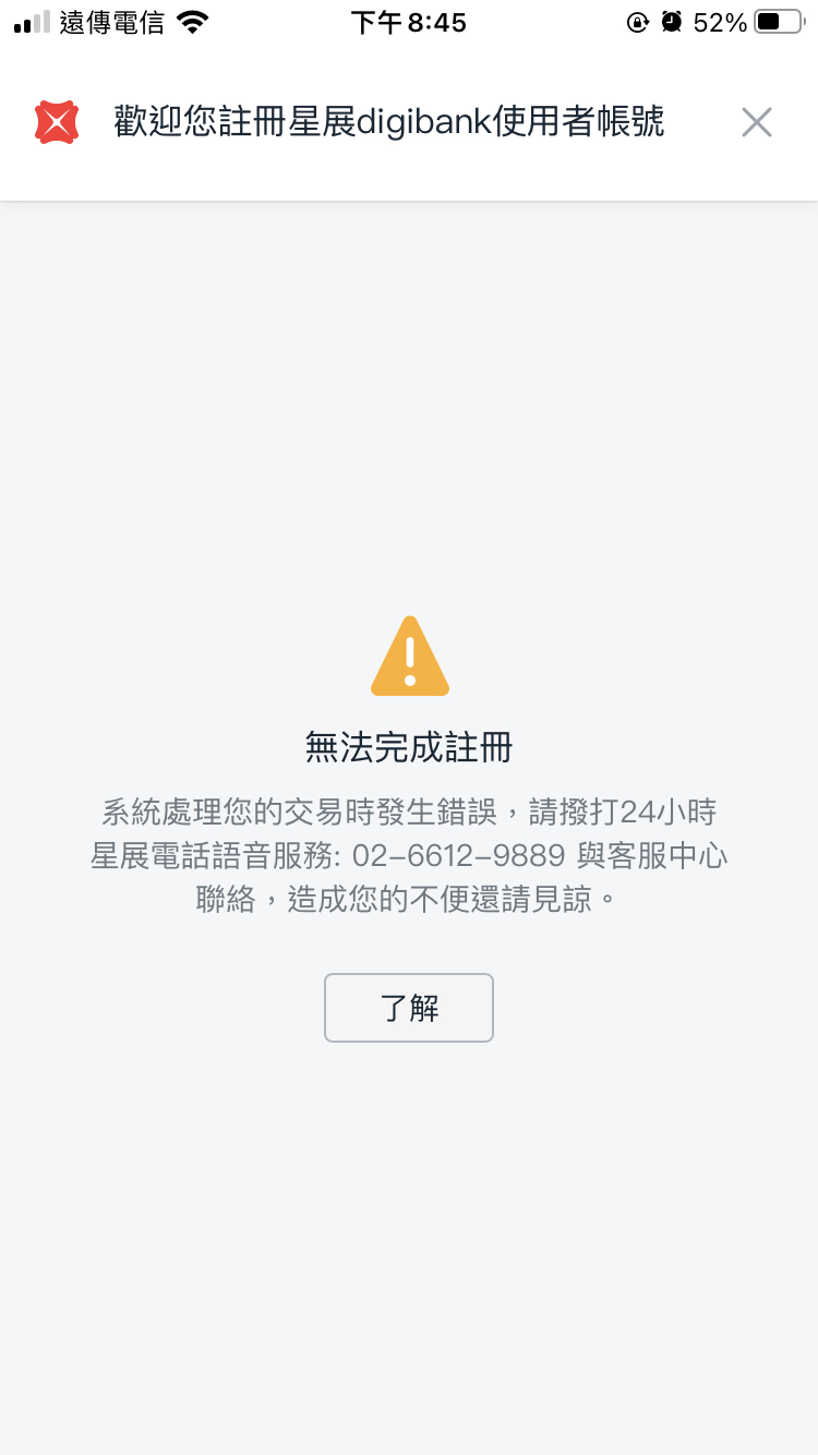 推 zjk4451 : 之前是digibank還是card+不能註冊? 08/21 20:22