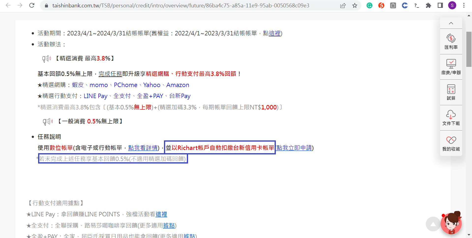 推 Kazamatsuri : 那就對了 3.3%要綁Richart扣款才有 一般台新實體戶 08/29 14:24
