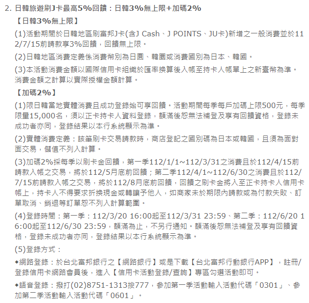 推 wattswatts : 這個登錄日韓5%與富邦暢遊樂登錄享5%回饋,能一起 08/31 23:48
