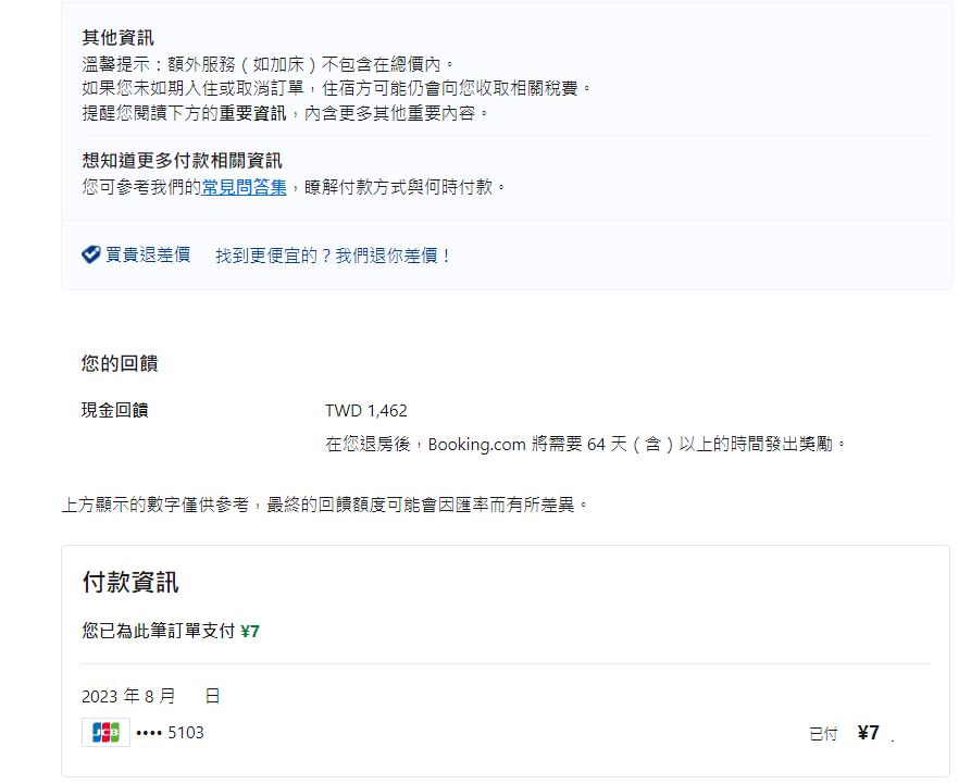 → pikachulai : booking目前看過有4種回饋法,現金回饋存WALLET刷退 09/01 14:11