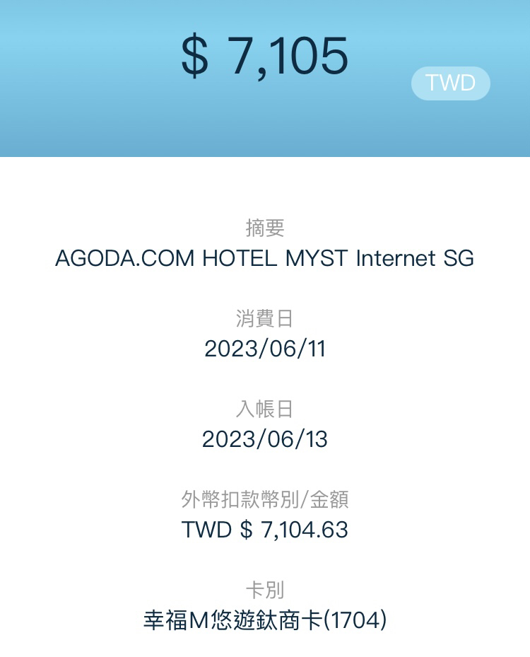 → meichyun : 不過我是刷agoda就有回饋,所以就沒太大差別 09/06 09:40