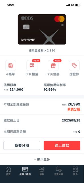 推 Baternest : 首頁/e帳單沒有 信用卡帳務下拉最近一期帳單有看到 09/14 13:23