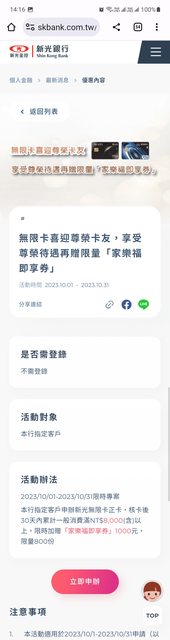 推 chillybreeze: 怎麼網頁刷卡福利很多都到9/30?沒有進一步更新?10/06 15:05
