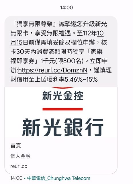 推 sonnyc : 只有一張小叮噹卡的窮人也有收到簡訊~ 10/06 20:11