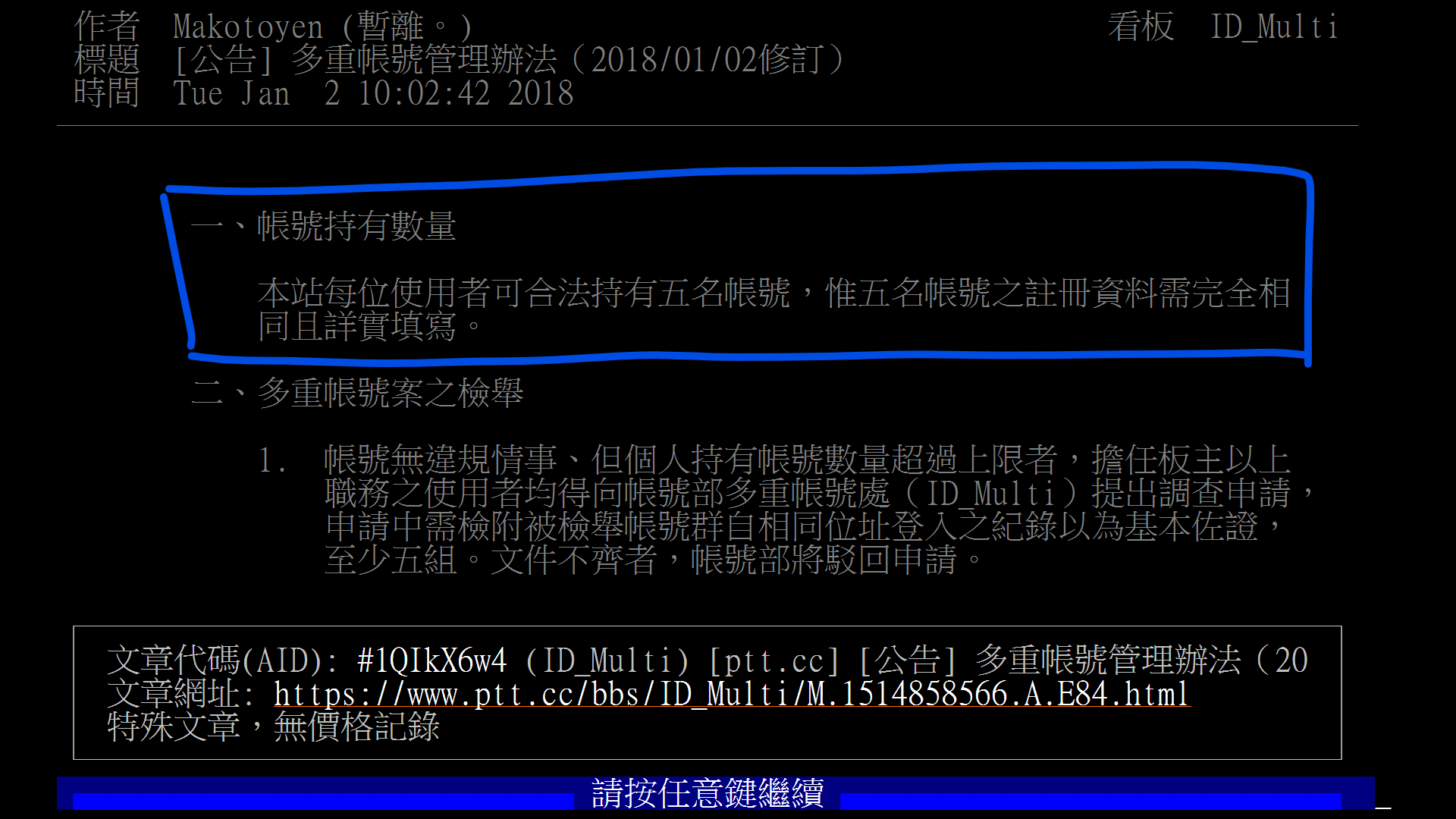 → tourism1003 : 本站每位使用者可合法持有五名帳號,惟五名帳號之註 10/11 13:48