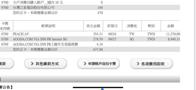 → m1357 : 率不好 帳單來的台幣 比Agoda 當下顯示的台幣還高 10/18 14:09
