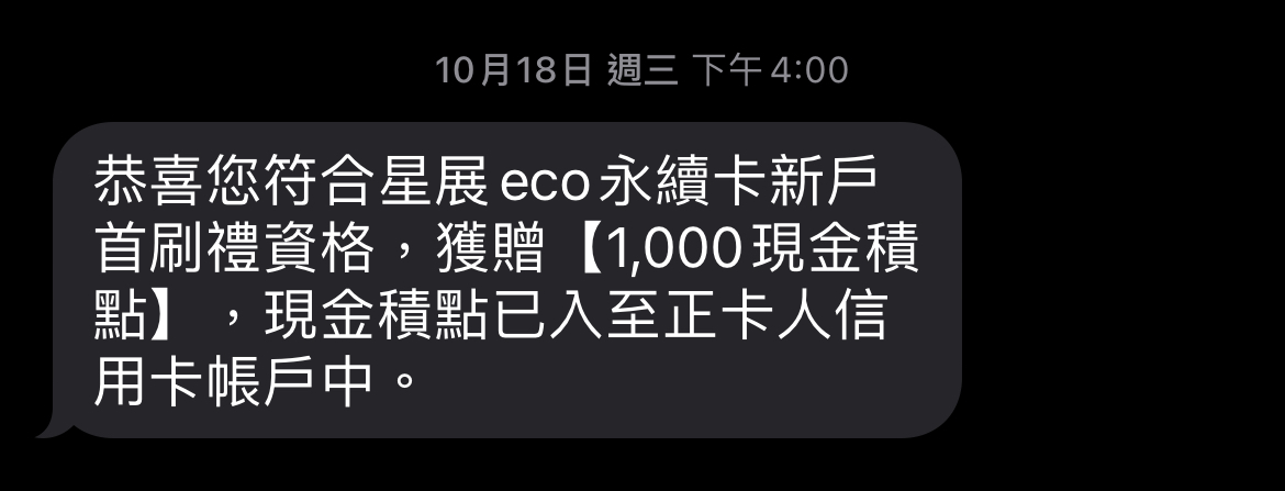 推 poju0424 : 我7/21申請eco卡, 新戶禮10月中就拿到了欸 10/27 12:39