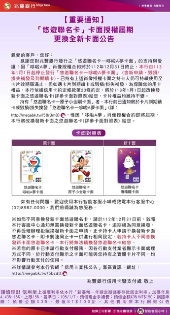 → jasonjaynet : 發哆啦A夢聯名卡是因為JC B國際組織有跟哆啦A夢簽 10/28 20:48