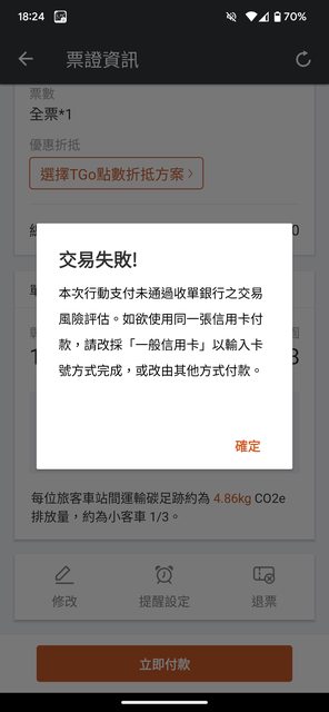 今天想線上訂高鐵票,然後用google pay付款