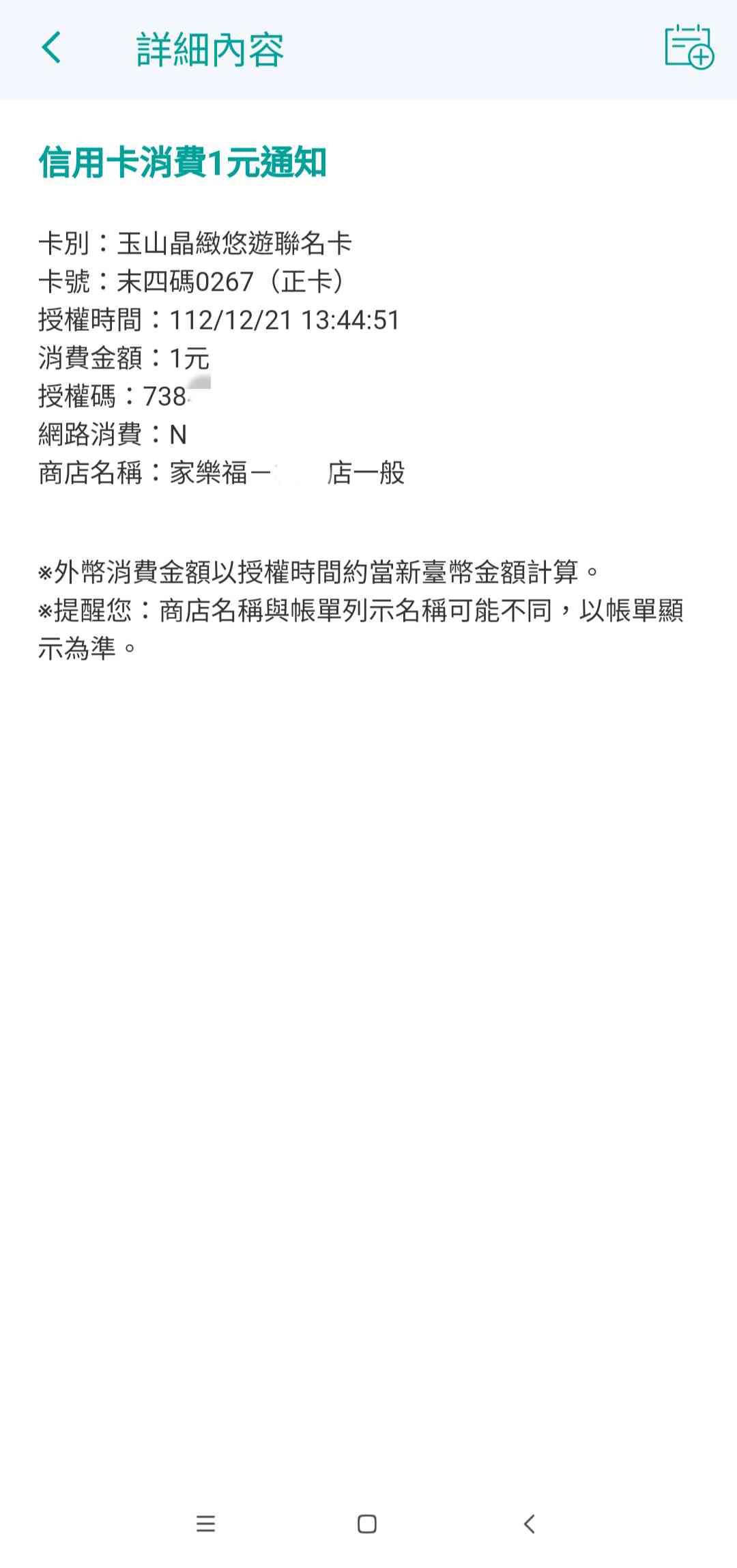 推 Kazamatsuri : 「信用卡」「一般消費」 12/21 10:54