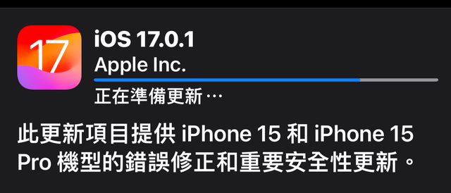推 cjay : iPhone 15 Pro現在可以更新iOS 17.0.209/22 06:56