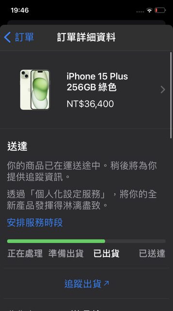 推 royaw : 我本10月上旬i15pm 256gb白,9/22突然通知出貨,9/ 09/24 21:57