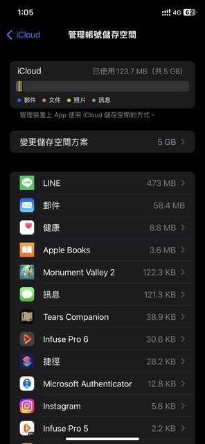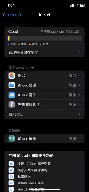 → lavendin82 : 我看我iphone儲存空間用了40g但icloud備份只有4.7g 10/05 10:14