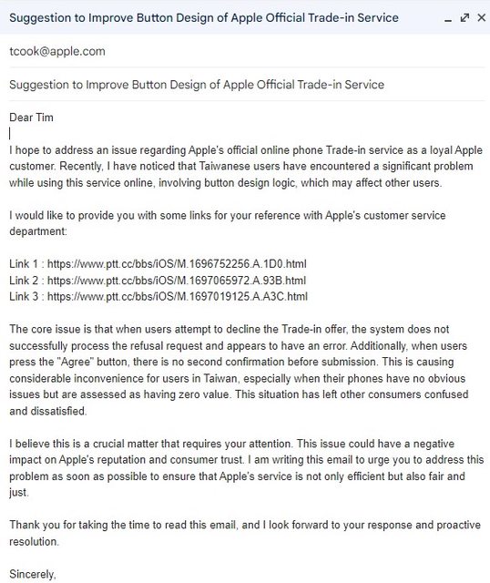 推 kashiwa27 : 庫克每天都收到幾百封懶得看吧 10/12 13:03