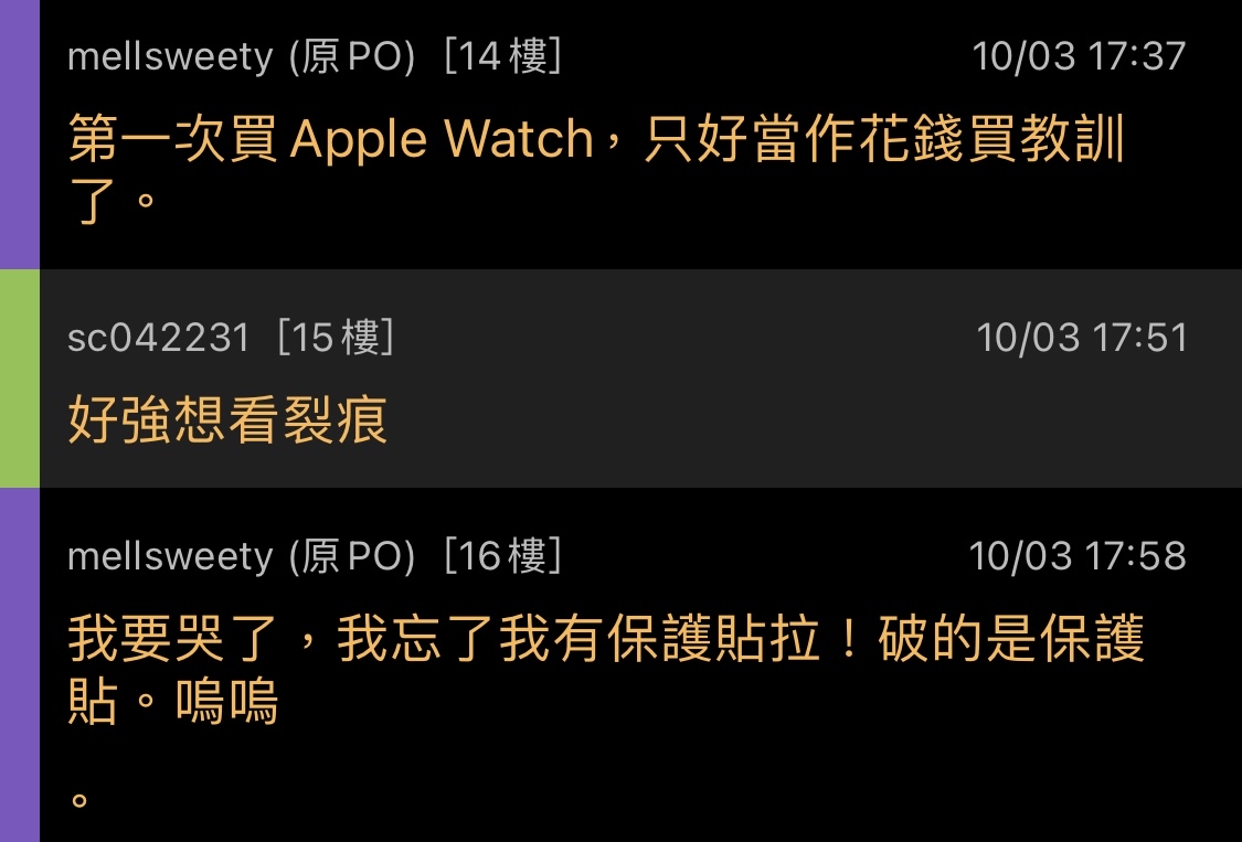 → mellsweety : 我上面有說我的保護貼是送的不是買的喔,我是買錶帶 10/13 17:03
