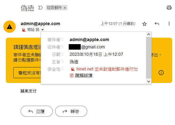 噓 benson861119: 不要再看寄件者了…寄件者早就可以完美仿冒了… 10/17 17:43