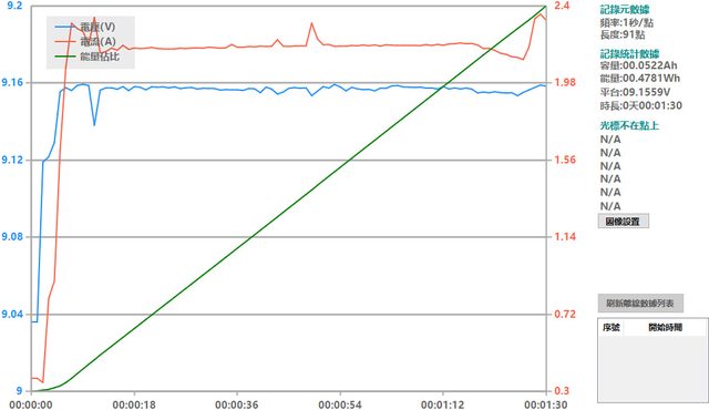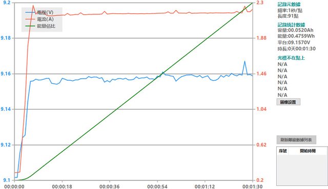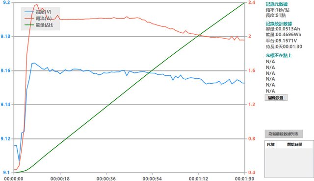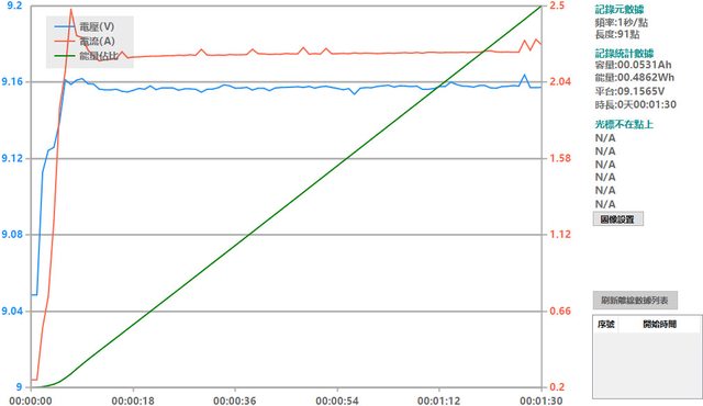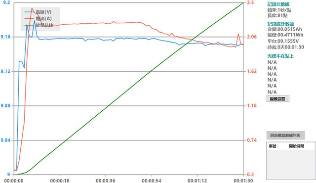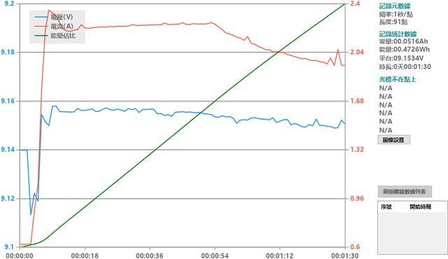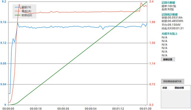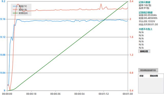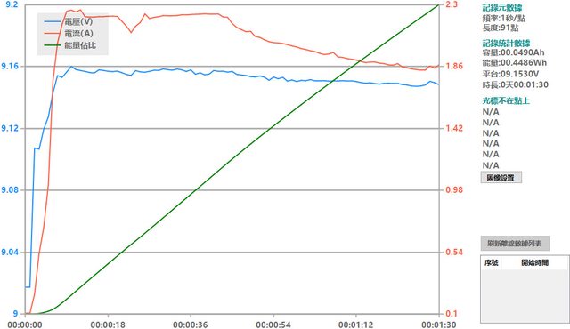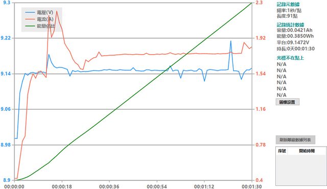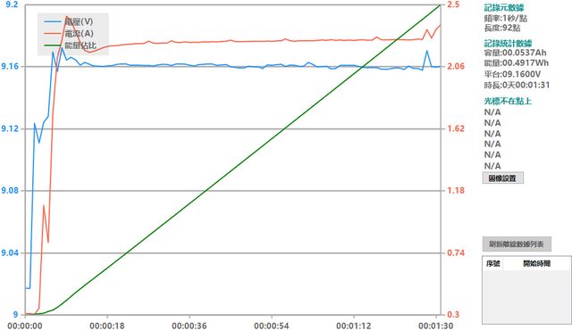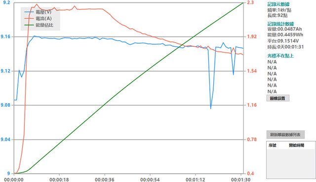 會跟著提高),然後會慢慢降下來,要在電池電量低於40%時才會維持在電流2A以上較長的