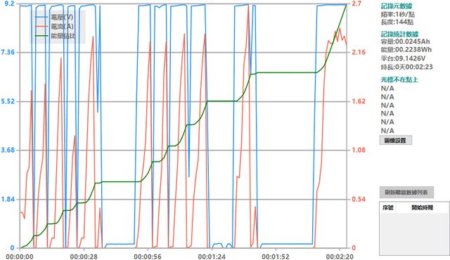 值以下後手機會關閉充電輸入(斷電),然後重新進行觸發。從電壓/電流曲線圖可看到一
