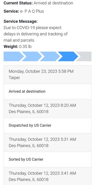 → WillChia: 出貨了,大概禮拜五最快收到 10/23 15:20