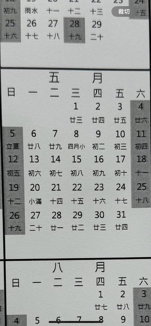 : 最上邊三月部分,放大看字體有些模糊