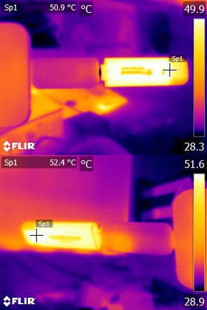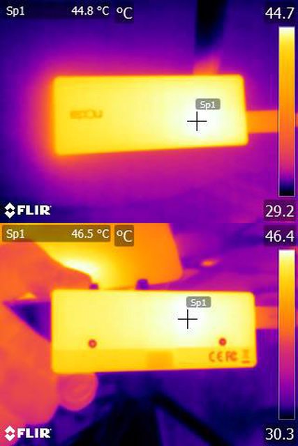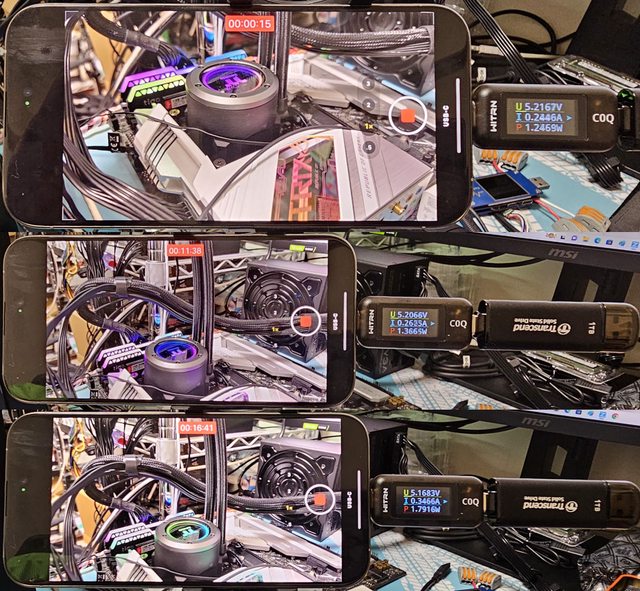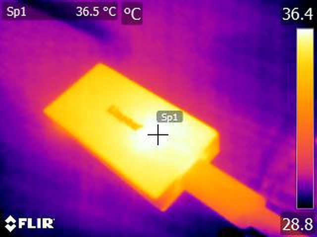 察消耗電流/功率,手機及儲存裝置的紅外線熱影像圖(測試環境室溫維持27度)。3款外接