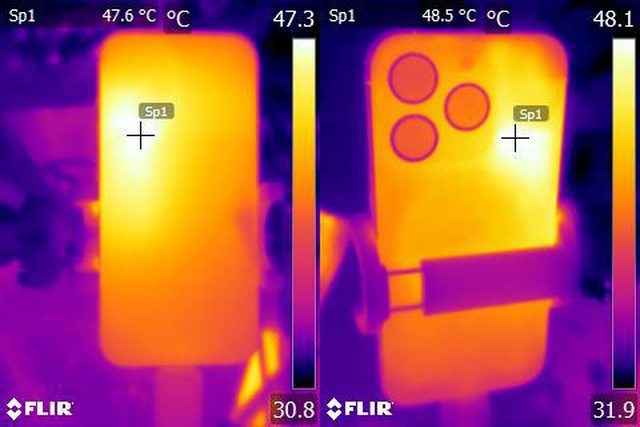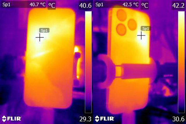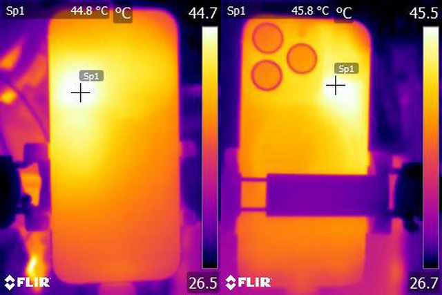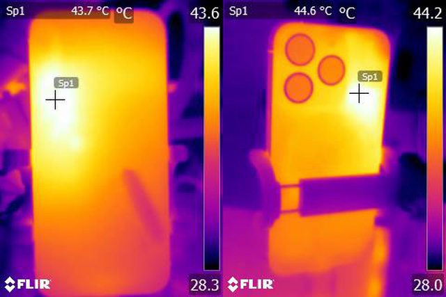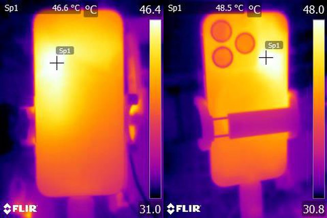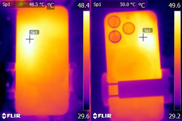 ▼ProRes HDR 4K/60fps格式影片錄製10分鐘後Apple iPhone 15 Pro正面及背面的紅外線