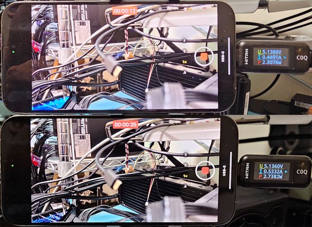 若寫入時耗電量過高,會出現寫入異常及裝置斷線問題。錄影時手機會處理影像資料並持