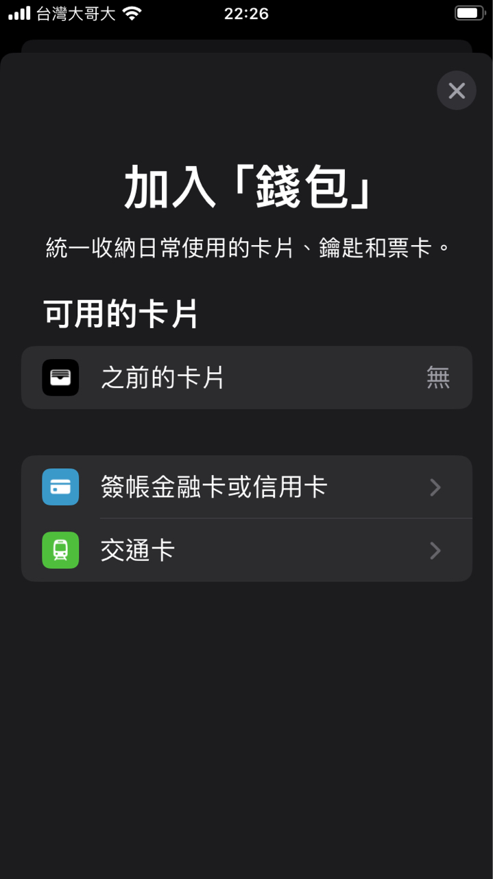 但發現錢包內沒有交通卡選項,版本已更新到最新