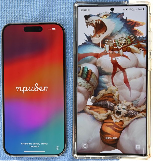 ▼Apple iPhone 15 Pro(左)與三星S23U(右)大小比較