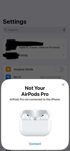連續開關幾次蓋子後彈出顯示不是我的耳機,