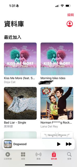 但現在他只有看到「最近加入」的歌曲,顯示方式是那首歌所屬專輯的封面