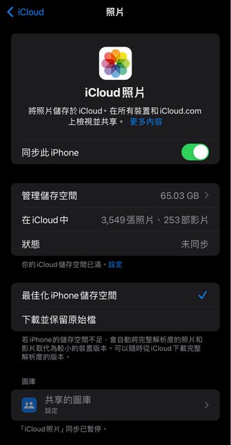 系統一直提示最佳化電池電力就暫停備份(滿電狀態邊充電邊同步也不行)