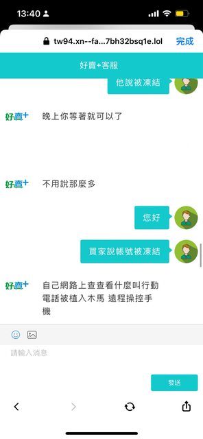 → hockhero: 我在好賣+賣東西,遇到買家叫我點連結去跟客服說買家帳 01/19 13:55