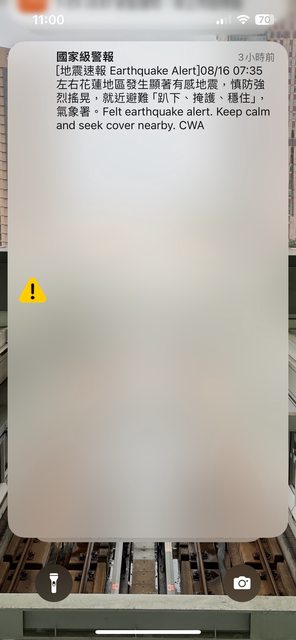 推 chihlcy: +1 警報來的時候甚至是空白 要自己點開才看得到上面那串 08/16 13:45