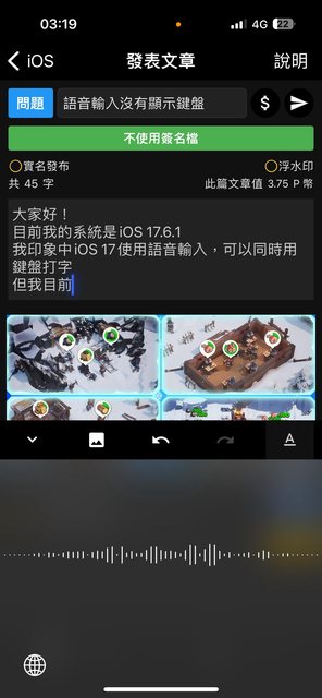 我印象中iOS 17使用語音輸入,可以同時用鍵盤打字