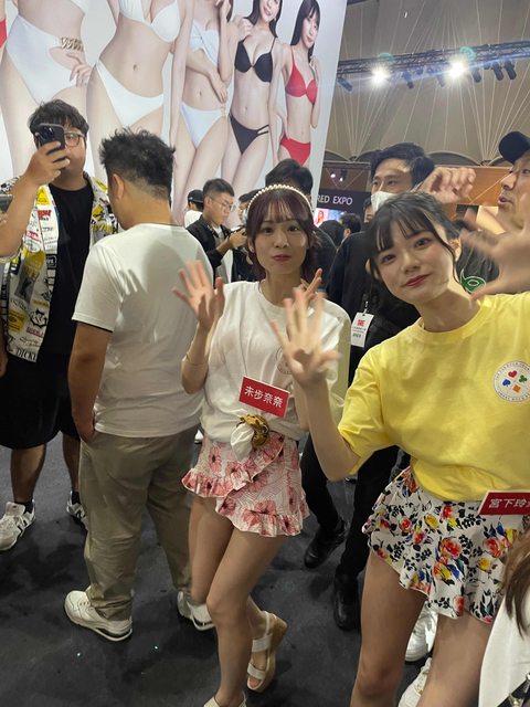 沒想到最後要離開還碰到未步奈奈跟宮下玲奈,手機趕快再拍一張,她們看到就立刻對著