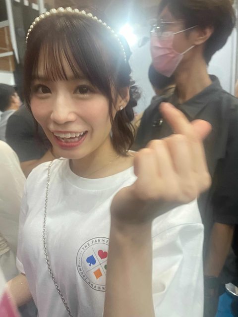 好看到未步奈奈要走去休息室,我下意識喊「奈奈」,她有注意到就對我比了愛心(我被